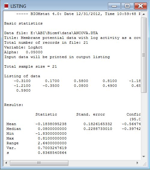 Sample screen shots for BIOMstat 4.0